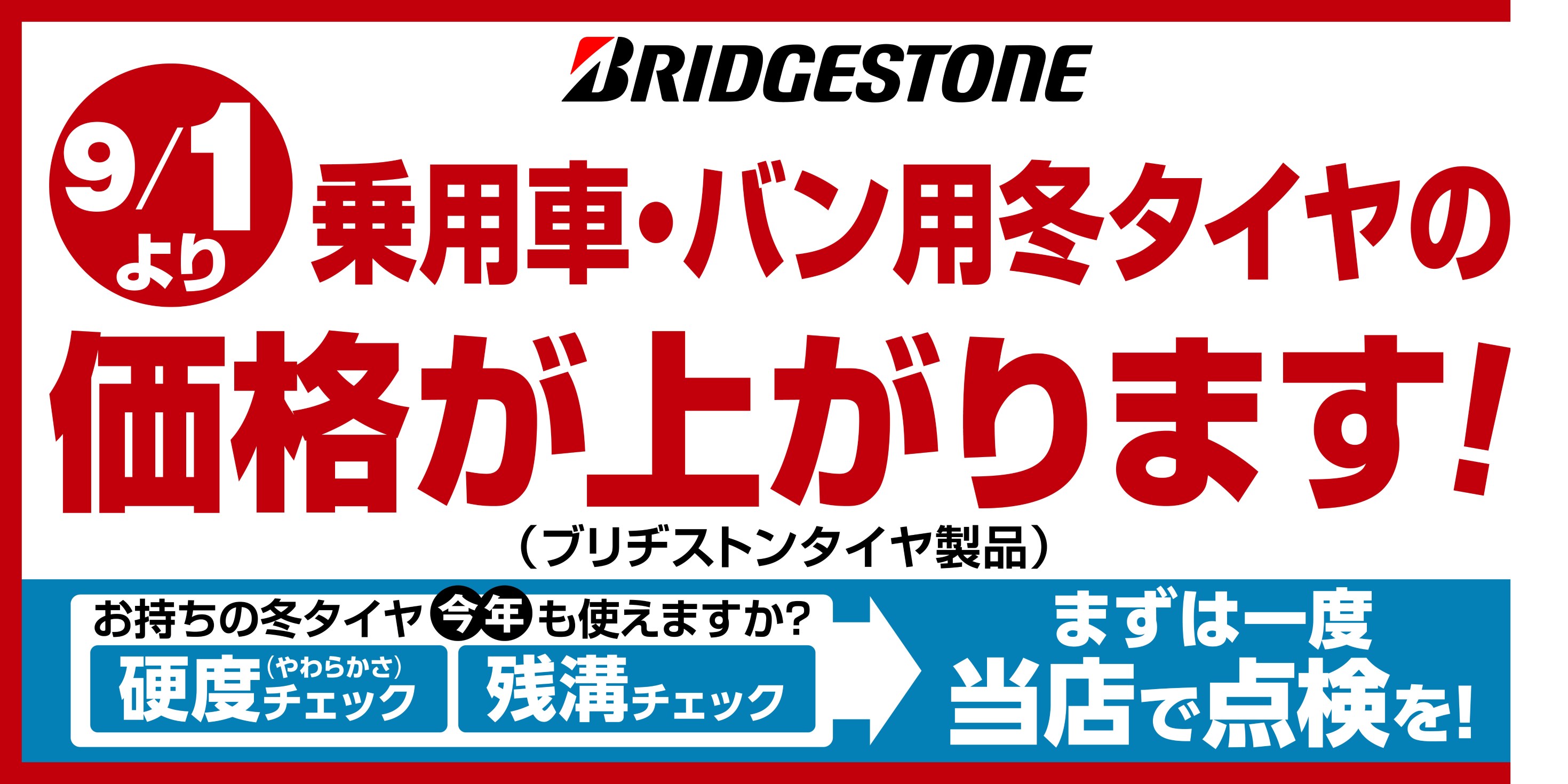 スタッドレスタイヤにおいても9月より値上がりいたします。