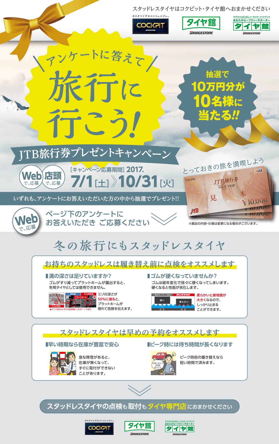 な、なんと!抽選で10名様にJTB旅行券10万円が当たるというなんとも豪華なものとなっております!!