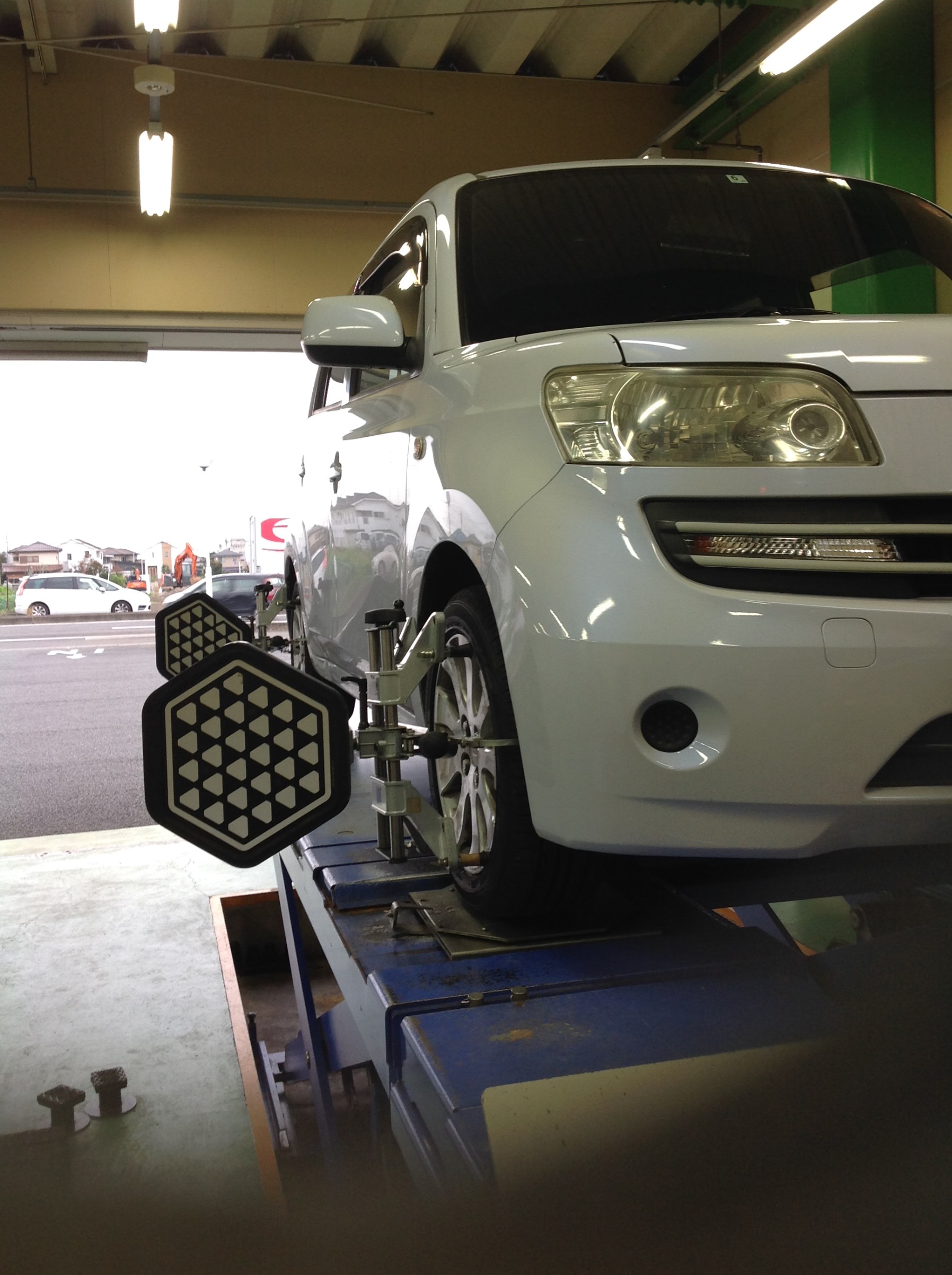 トヨタ bB…かと思いきや、ダイハツ クーのアライメント作業を行ないました!
