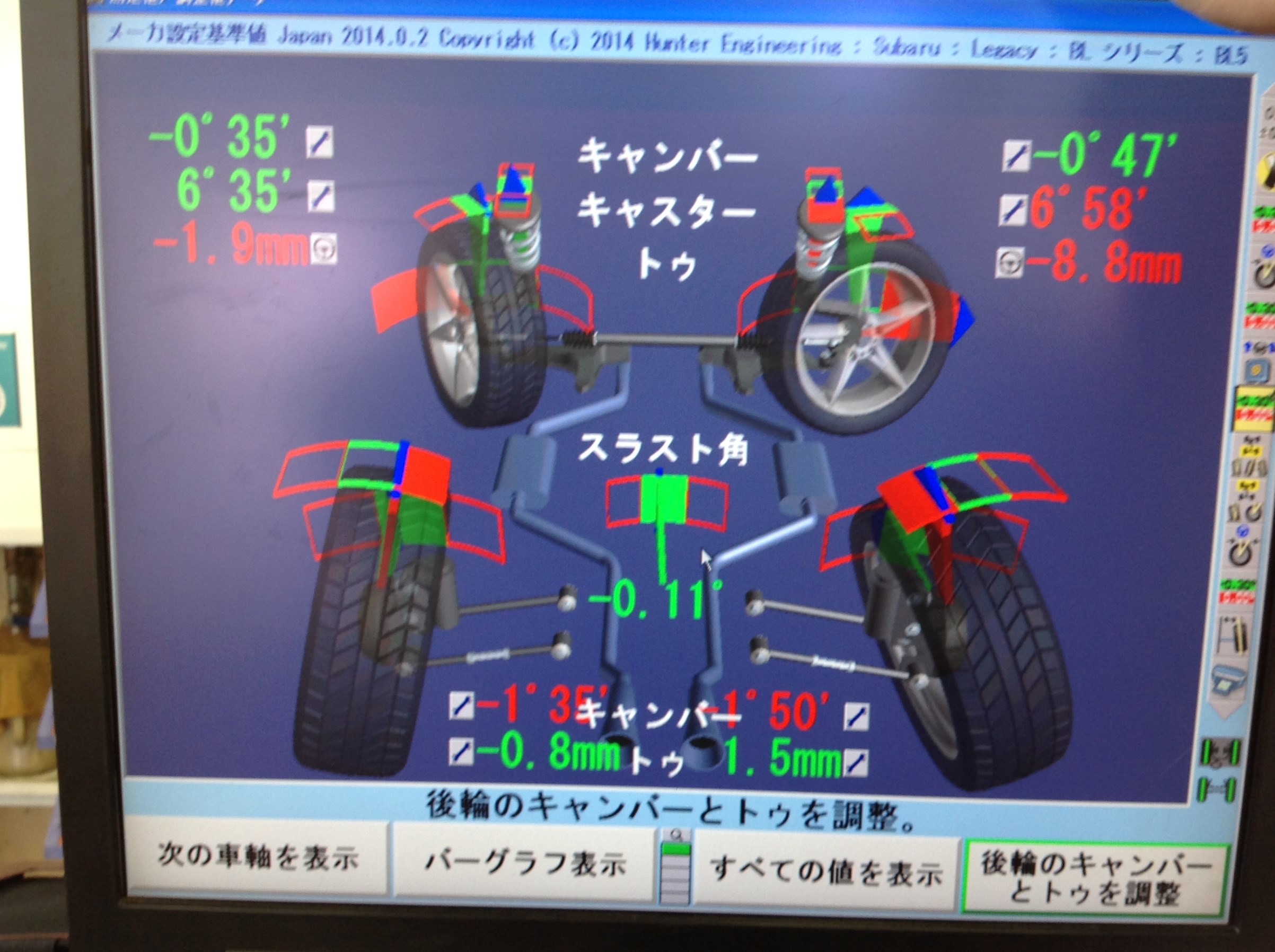 先日、レガシィのお客様のアライメントをさせていただきました!