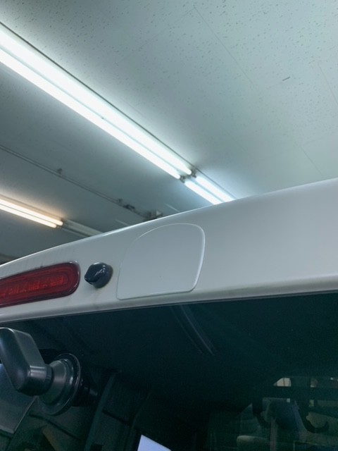 今回お取り付けした車両は元々後付けでリアハッチ上側にボディに穴開けをして