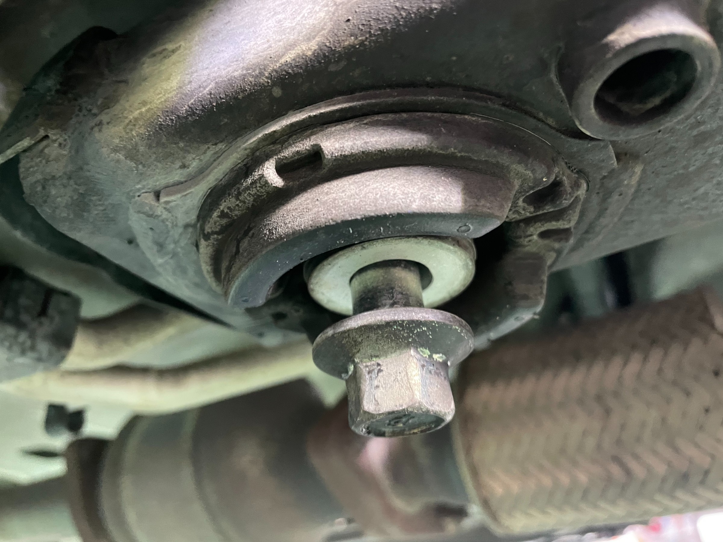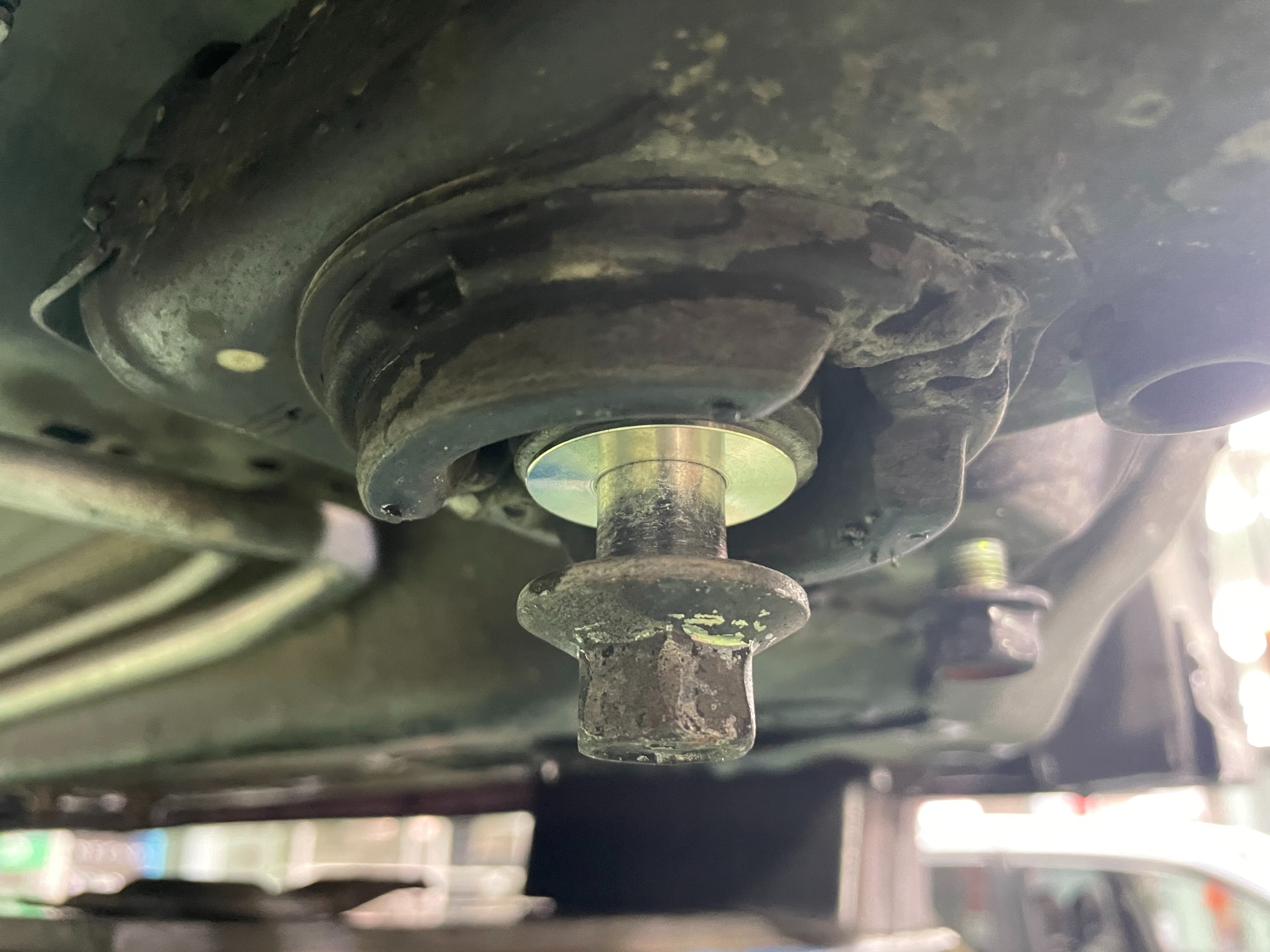 隙間パーツですので写真で伝わりづらいですが、、、写真の様なサブフレームの隙間・ズレをリジカラで埋めて中心軸を出すパーツです。