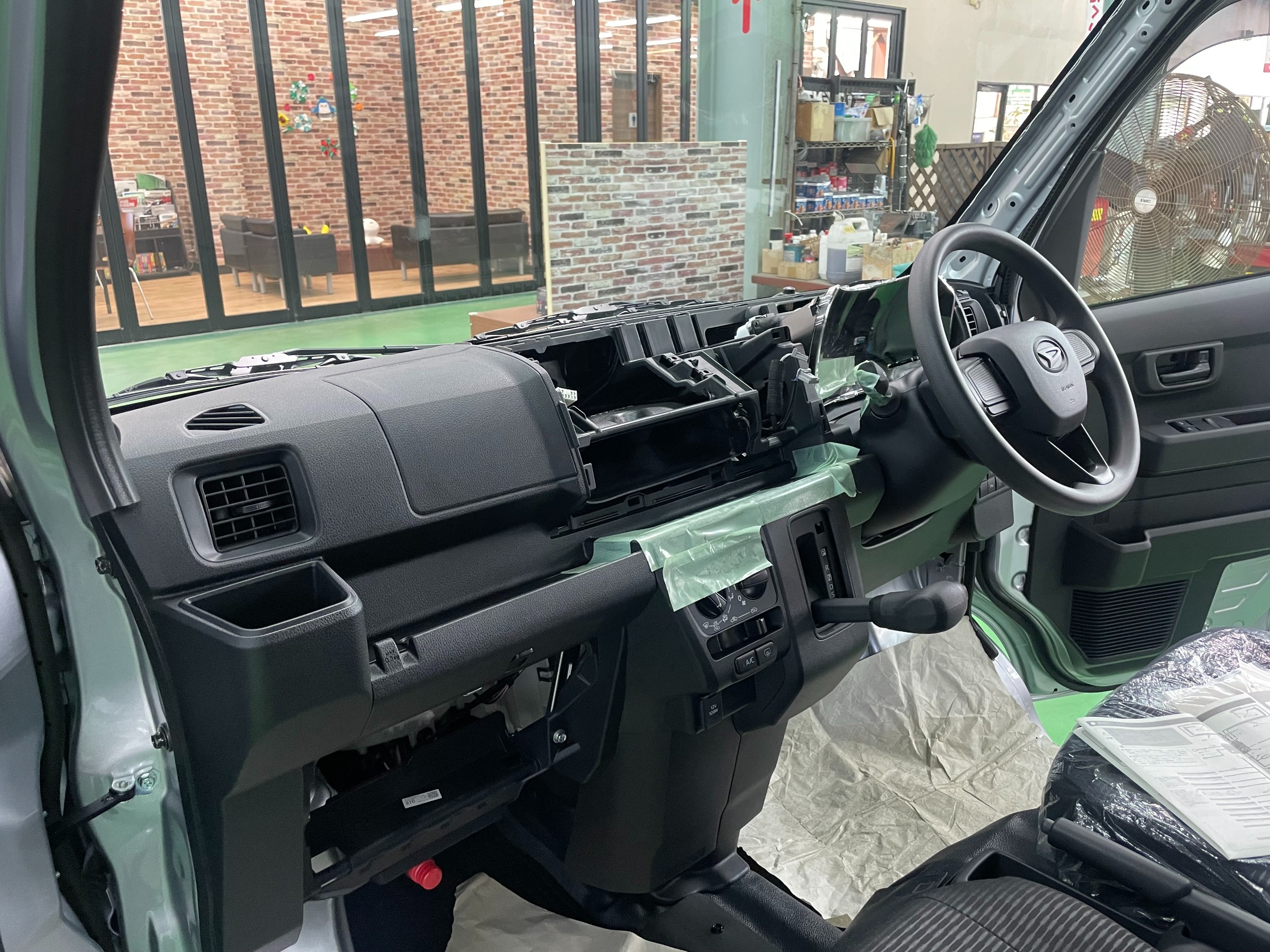 新車で納車になられたばかりのハイゼットカーゴにカーナビ・バックカメラをお取り付けさせて頂きました。