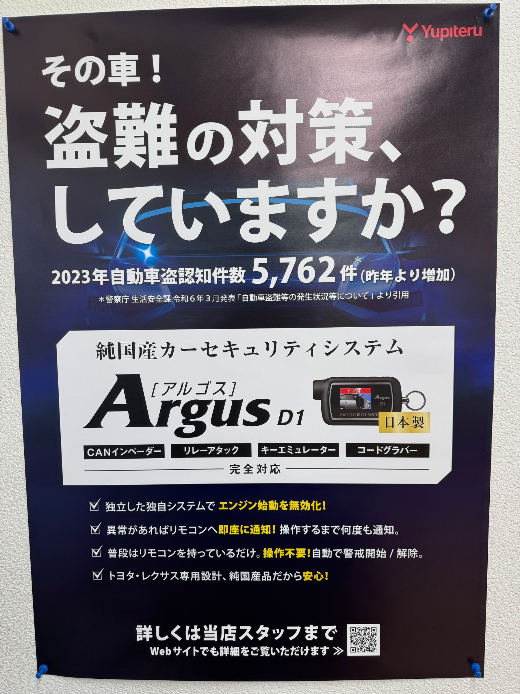 ユピテル セキュリティ ポスト 2025年7月22日 当店はユピテルのセキュリティ取扱店と なっておりまして、最近有難いことに お問い合わせやお取り付けも 非常に多くなってきております。 特に多いのが、ランクル250、40アルファードで、 そちらの車種であれば在庫もございますので お電話いただければ、最短でお取り付けも可能です。 トヨタ、レクサスの新車をご購入の方は是非! ご検討の程宜しくお願い致します。 #ユピテル #セキュリティ #アルゴスD1 #ランクル250 #40アルヴェル #盗難対策 #タイヤ館 #高島平 #タイヤ #ブリヂストン #板橋区 #練馬区 #和光市 #戸田市 カテゴリ:その他商品・サービス