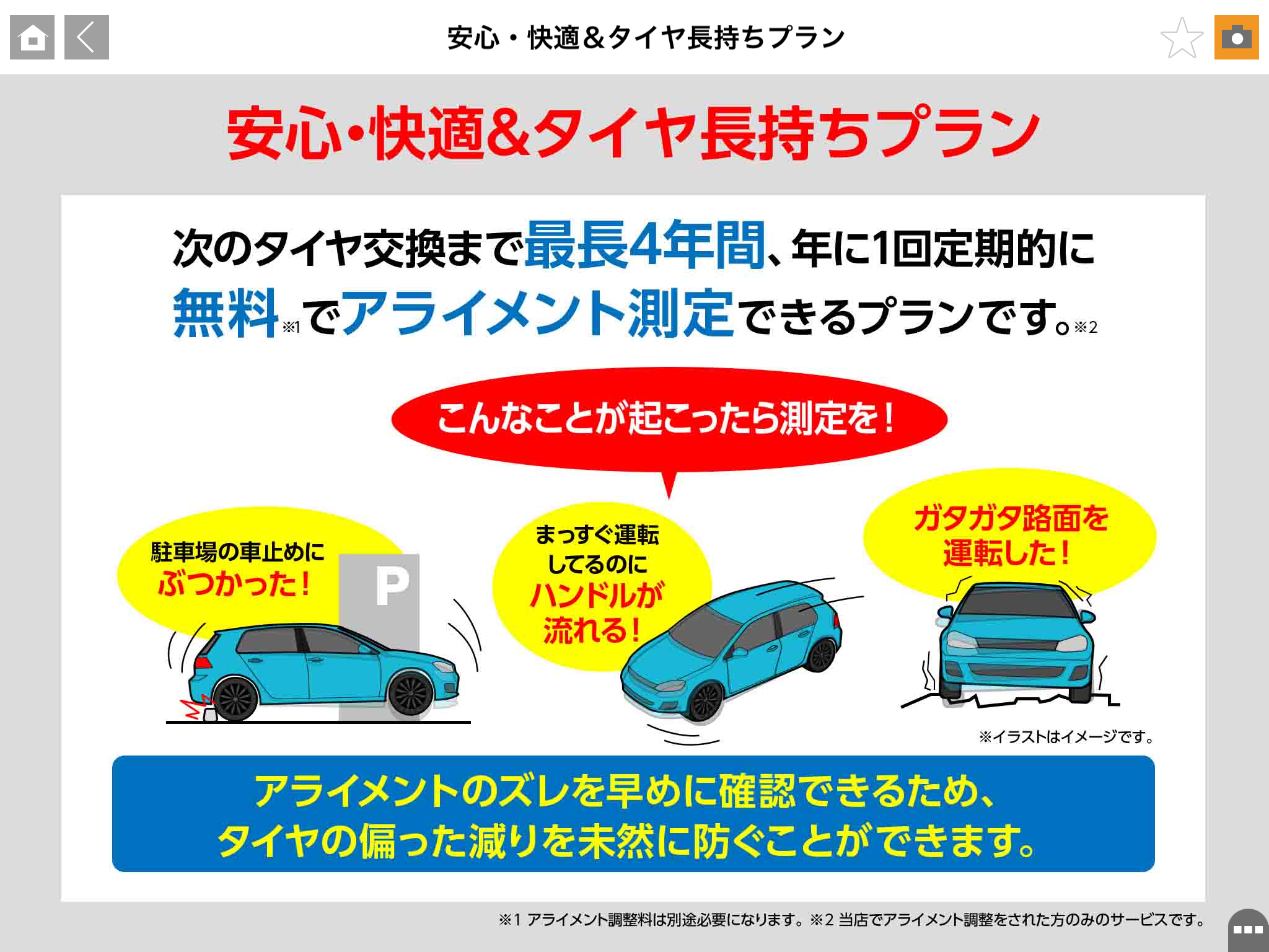 アライメントを定期的に無料で測定できるなんてすごいお得だと思いませんか?