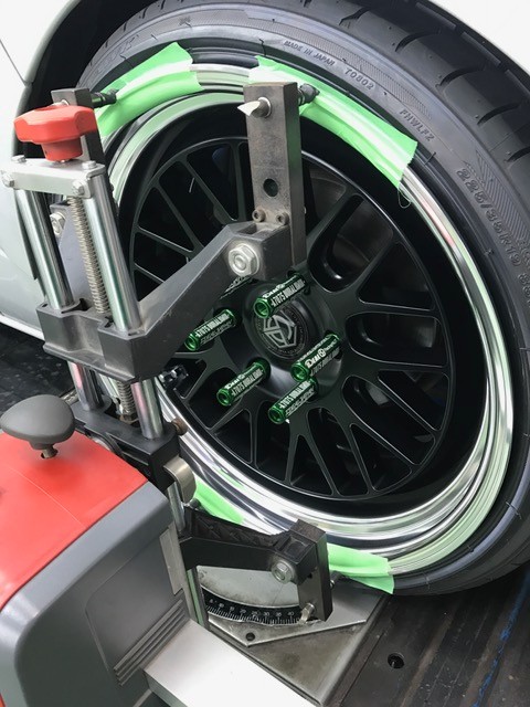 新品ホイールを傷つけないように養生テープを貼ってからの作業です!