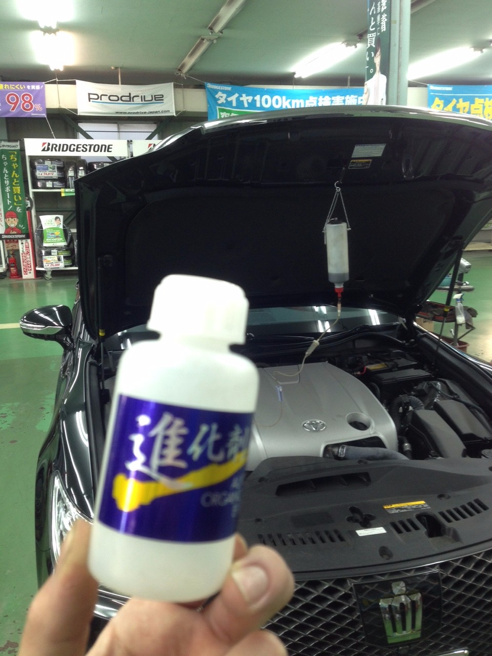 本日はお客様の車に進化剤を施工いたしました。