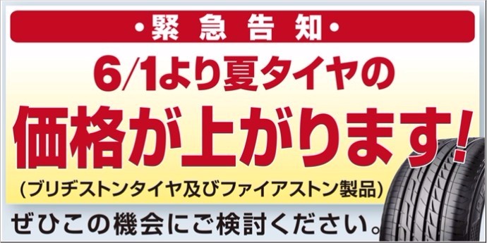 6月1日からタイヤが値上がりします!