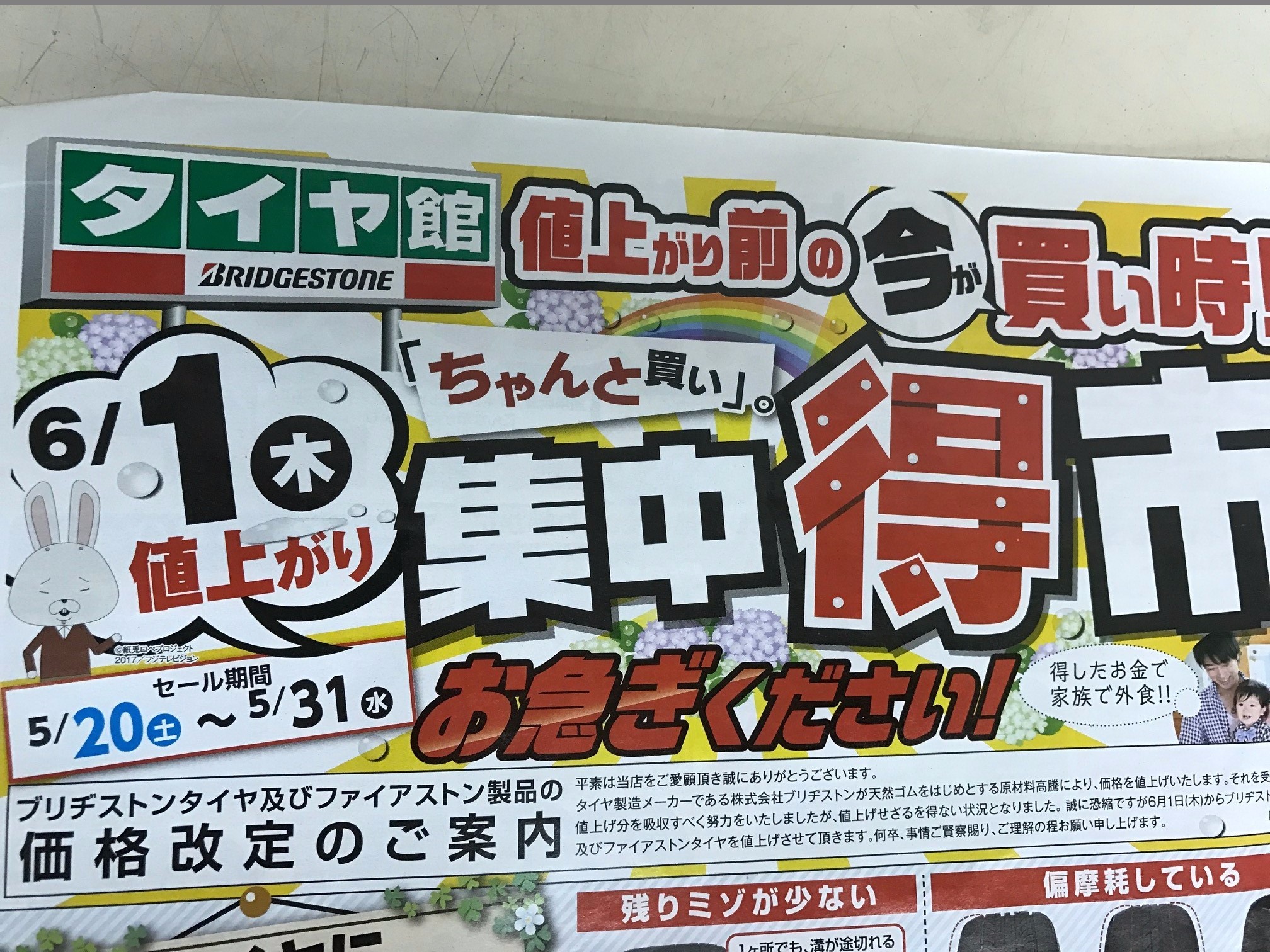 来月や再来月タイヤ交換をお考えの方は、6/1からタイヤが値上げに
