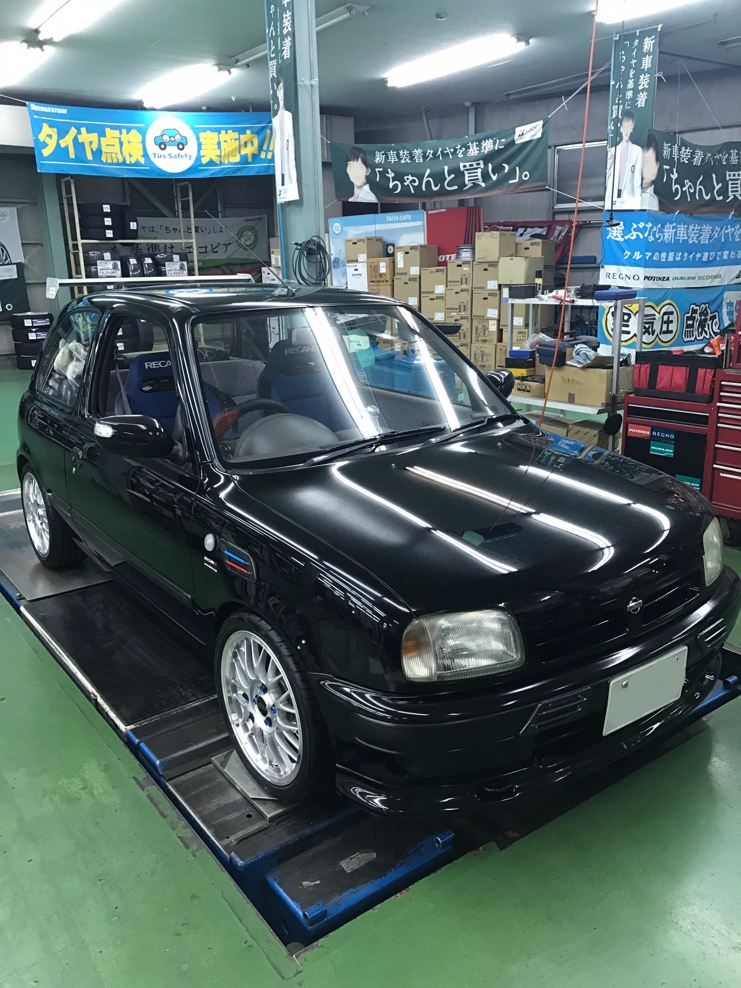お車はこちらのマーチで、ホイールはBBSのRG-Fなのですが、