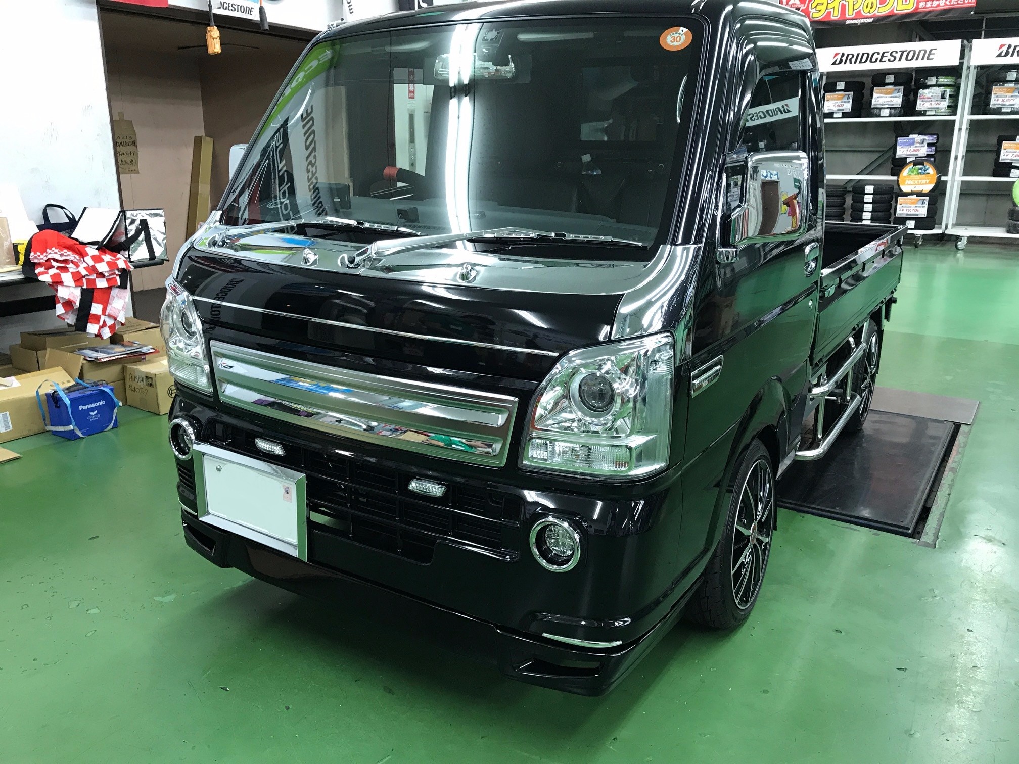 現在、車高調が付いており純正よりも車高が下がっていますが、軽トラックですと、どうしても