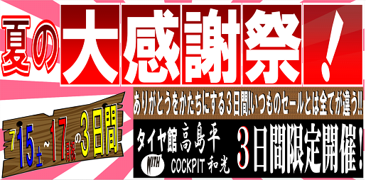 当店で明日から3日間コックピット和光と合同で「夏の大感謝祭!」を開催致します!!