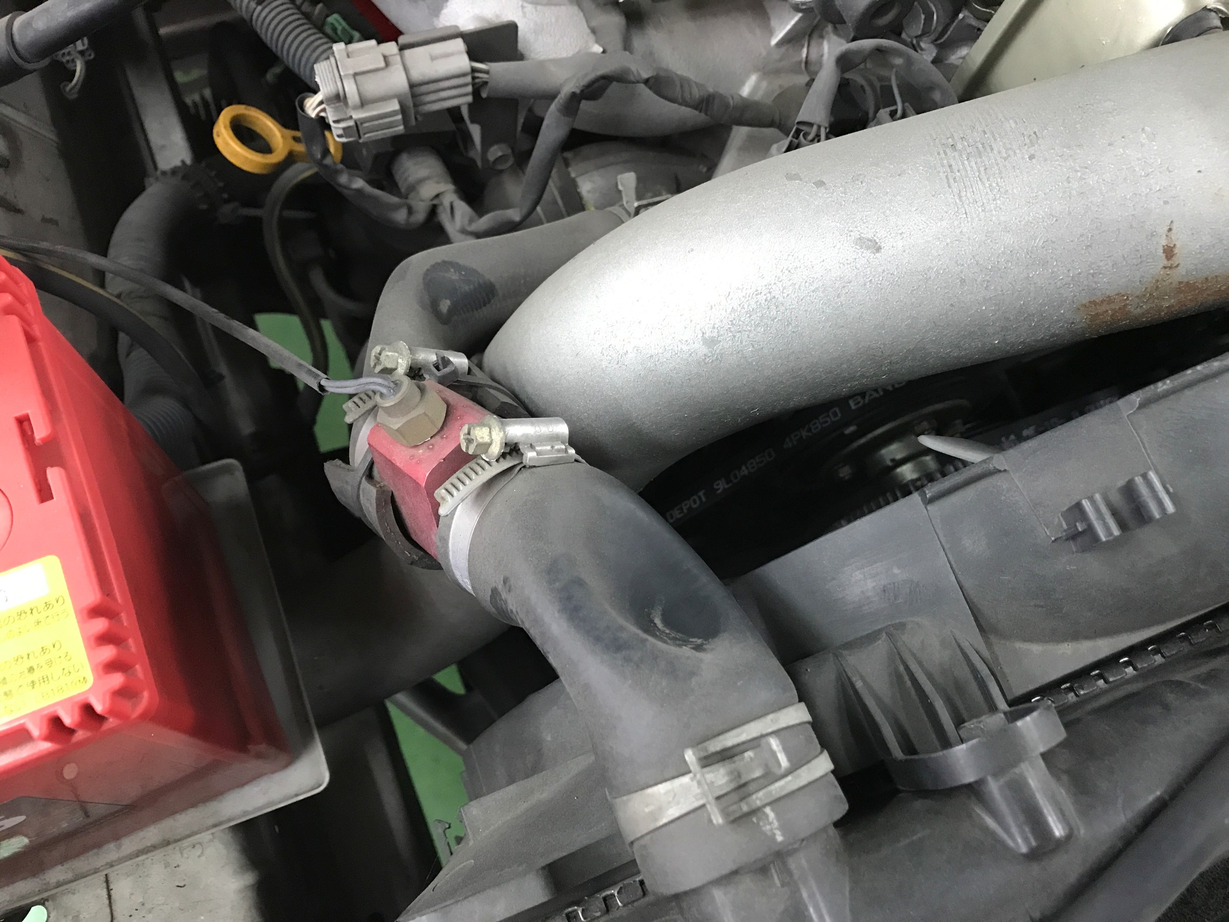 専用器具も導入しての交換を実施してます。写真の様にホースがペチャンコになる程の真空状態にしてから圧送するので、確実なエアー抜きと時間短縮が可能となりました。