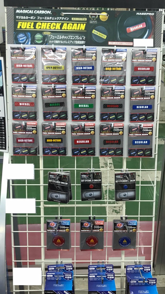 給油キャップやラジエーターキャップに貼るステッカーだったり…