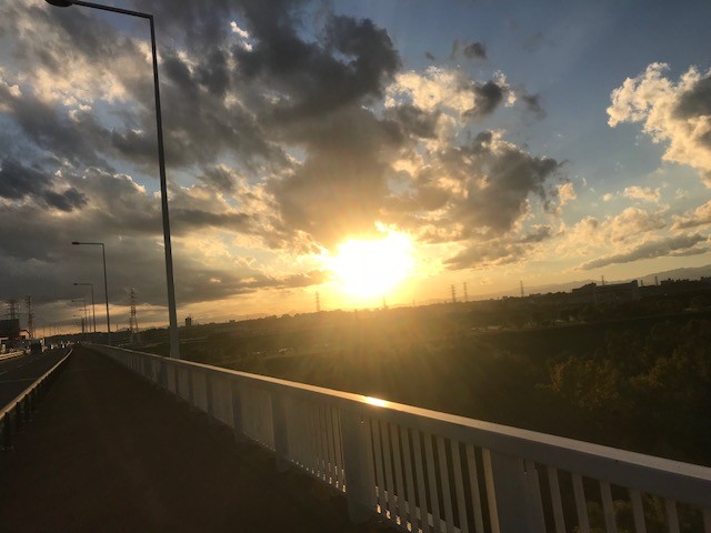 帰宅する時に幸魂大橋(さきたまおおはし)から見た夕日がとても綺麗でした
