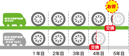 そしてエコピアR710は、走行を重ねても溝がすり減りにくく、