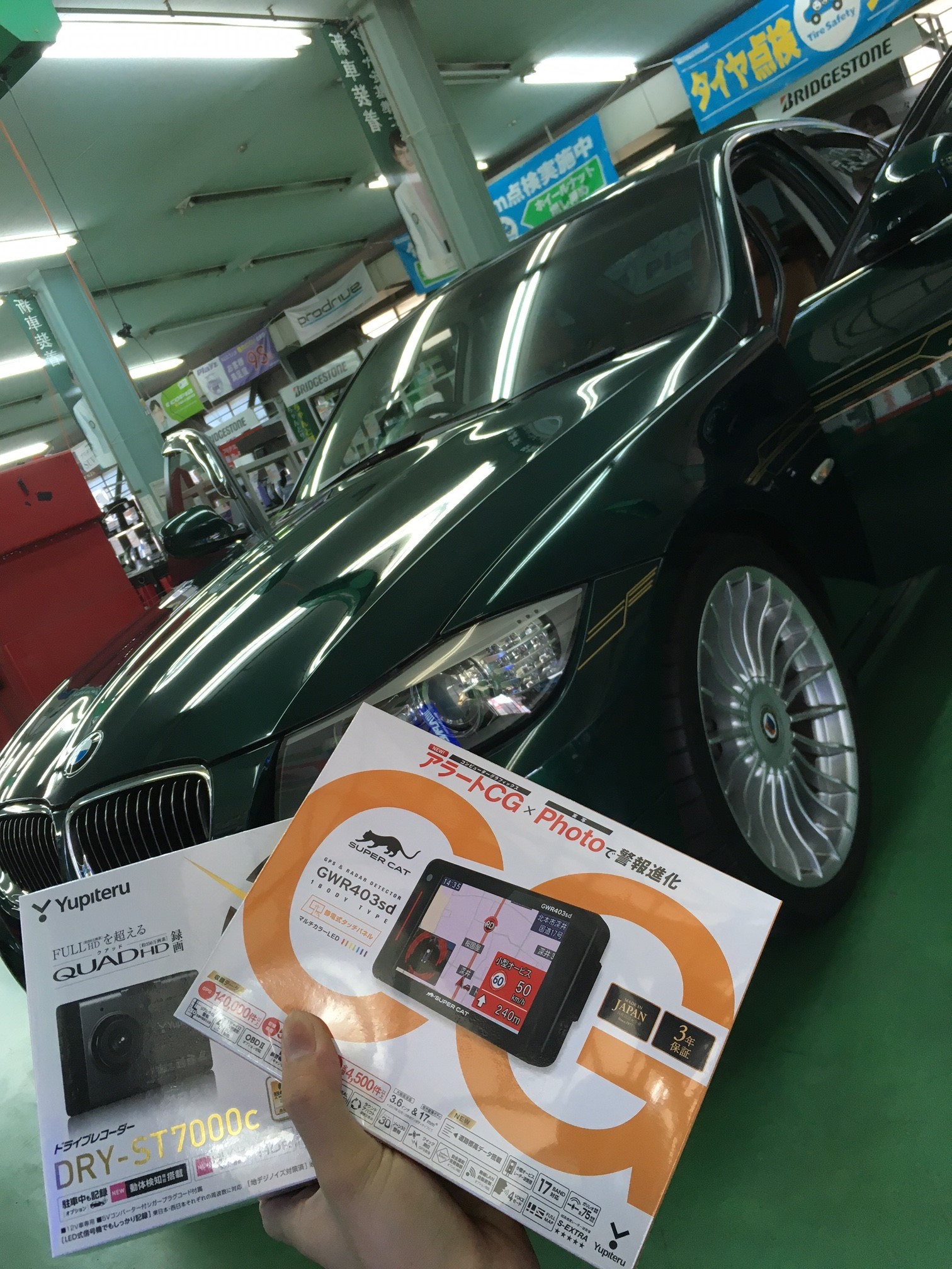 で、今回はBMWのアルピナにドライブレコーダー、レーダー探知機をお取り付けいたしました!