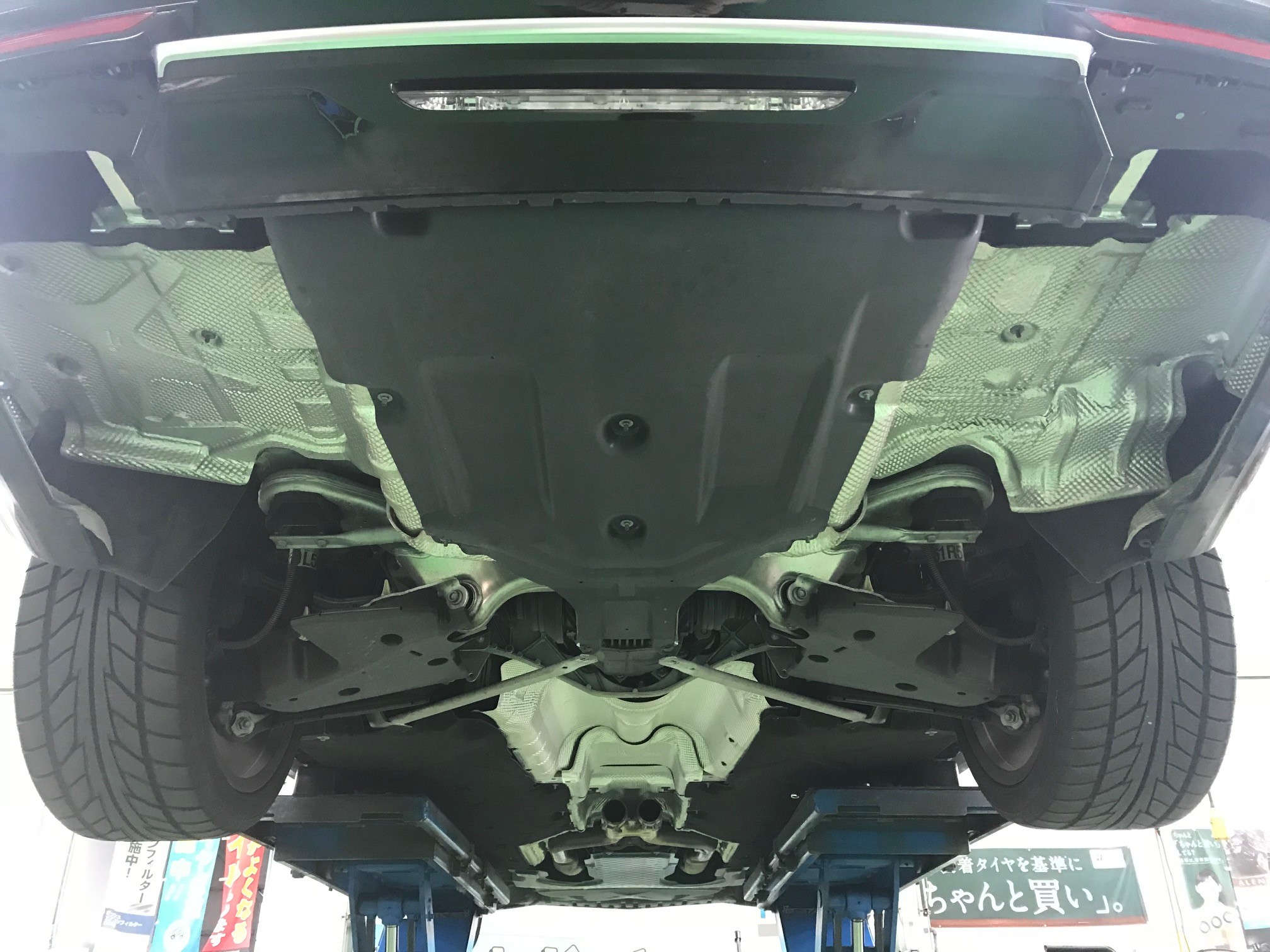 まずは純正のマフラーを外しますが、二人で作業しないと厳しいです。