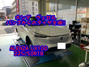 【タイヤ館高津店のパンクからのタイヤ交換事例】 ホンダ・ヴェゼルのタイヤを「ALENZA LX100」に交換しました。
