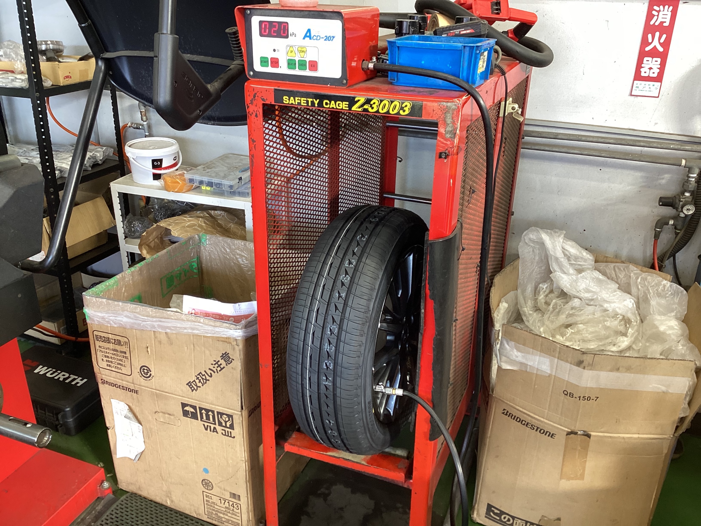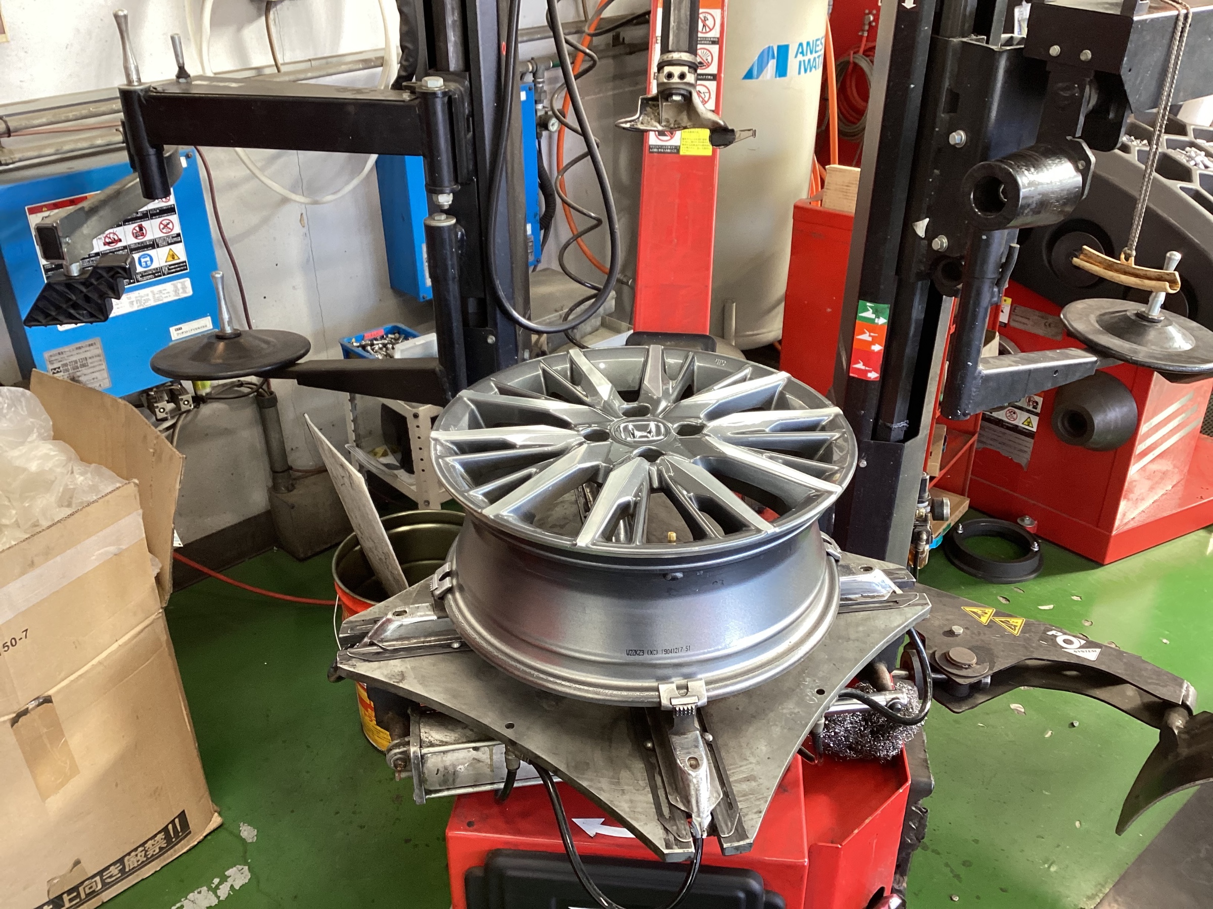 タイヤとホイールをバラして次に新しいタイヤを取り付けでいきます。