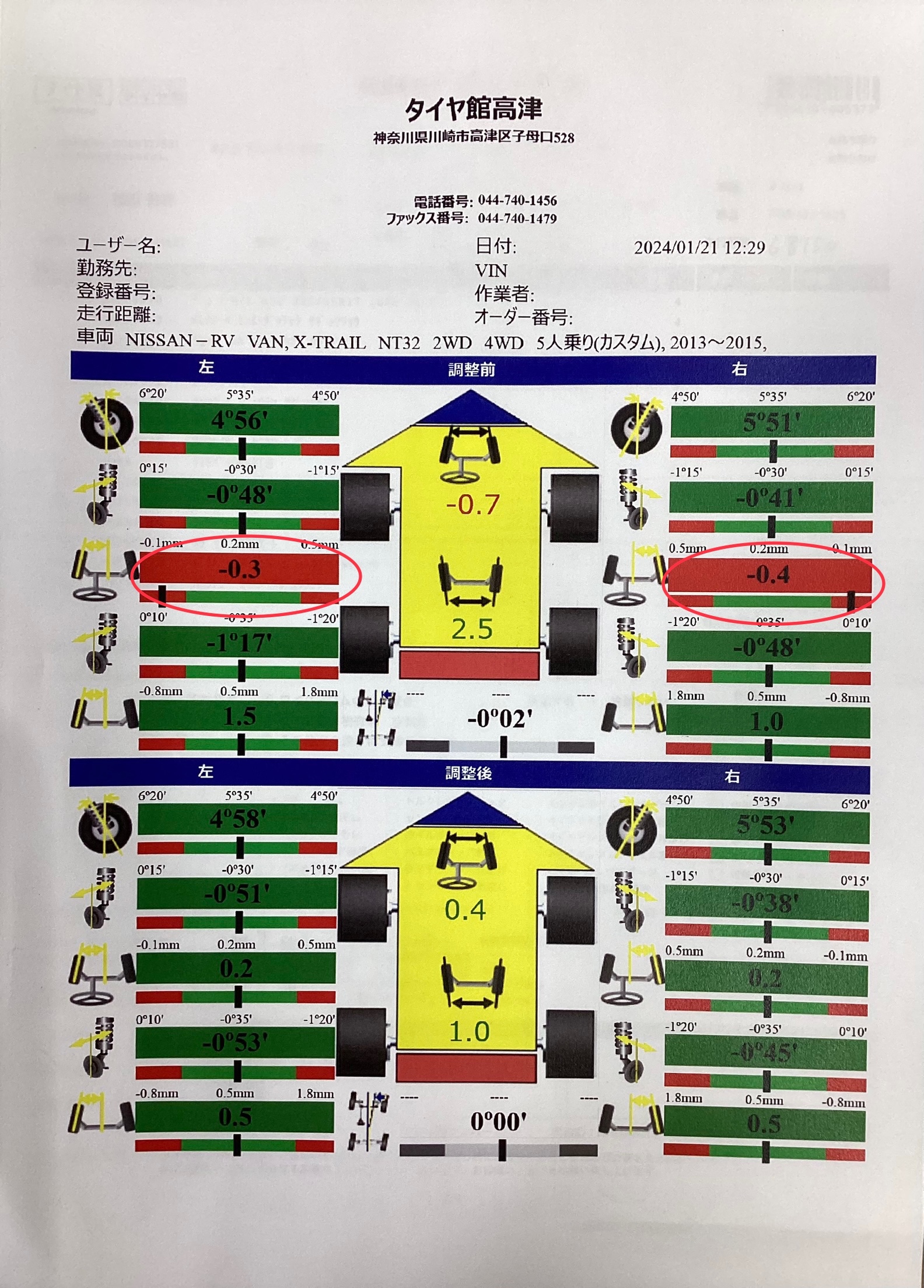 車両によって調整箇所が決められていますので調整して作業終了になります。