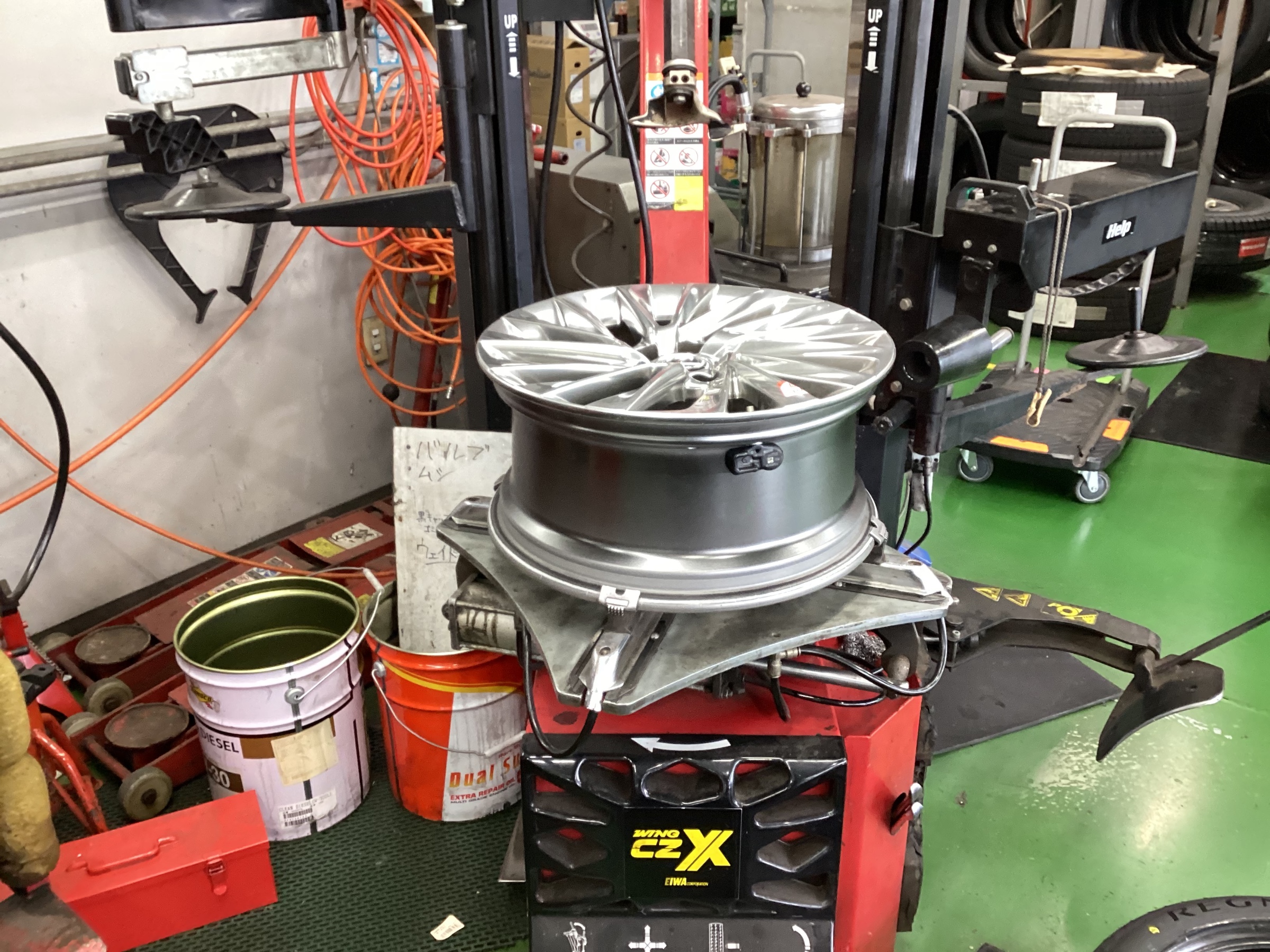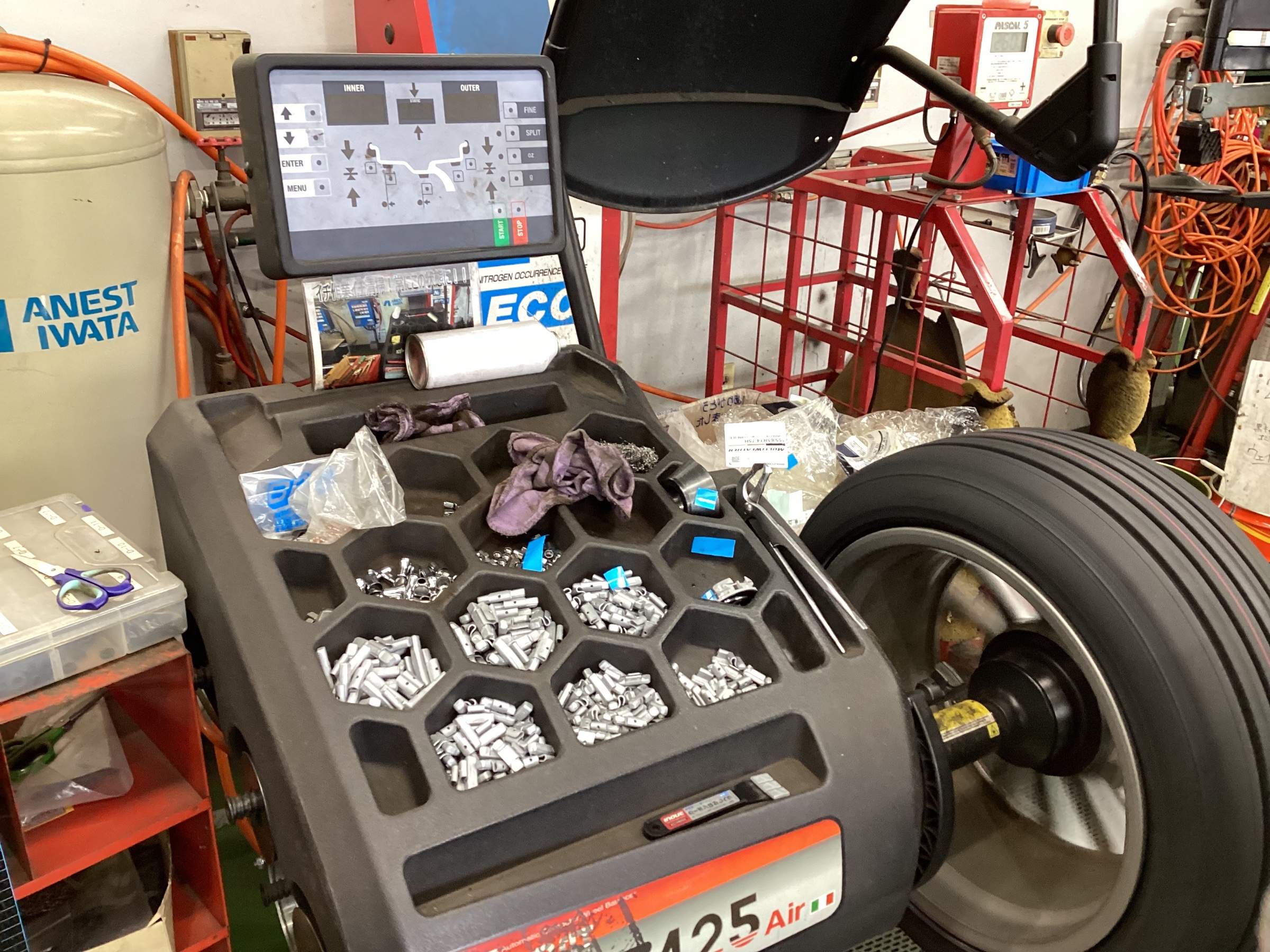 タイヤのバランスをとって車に取り付けていきます!!