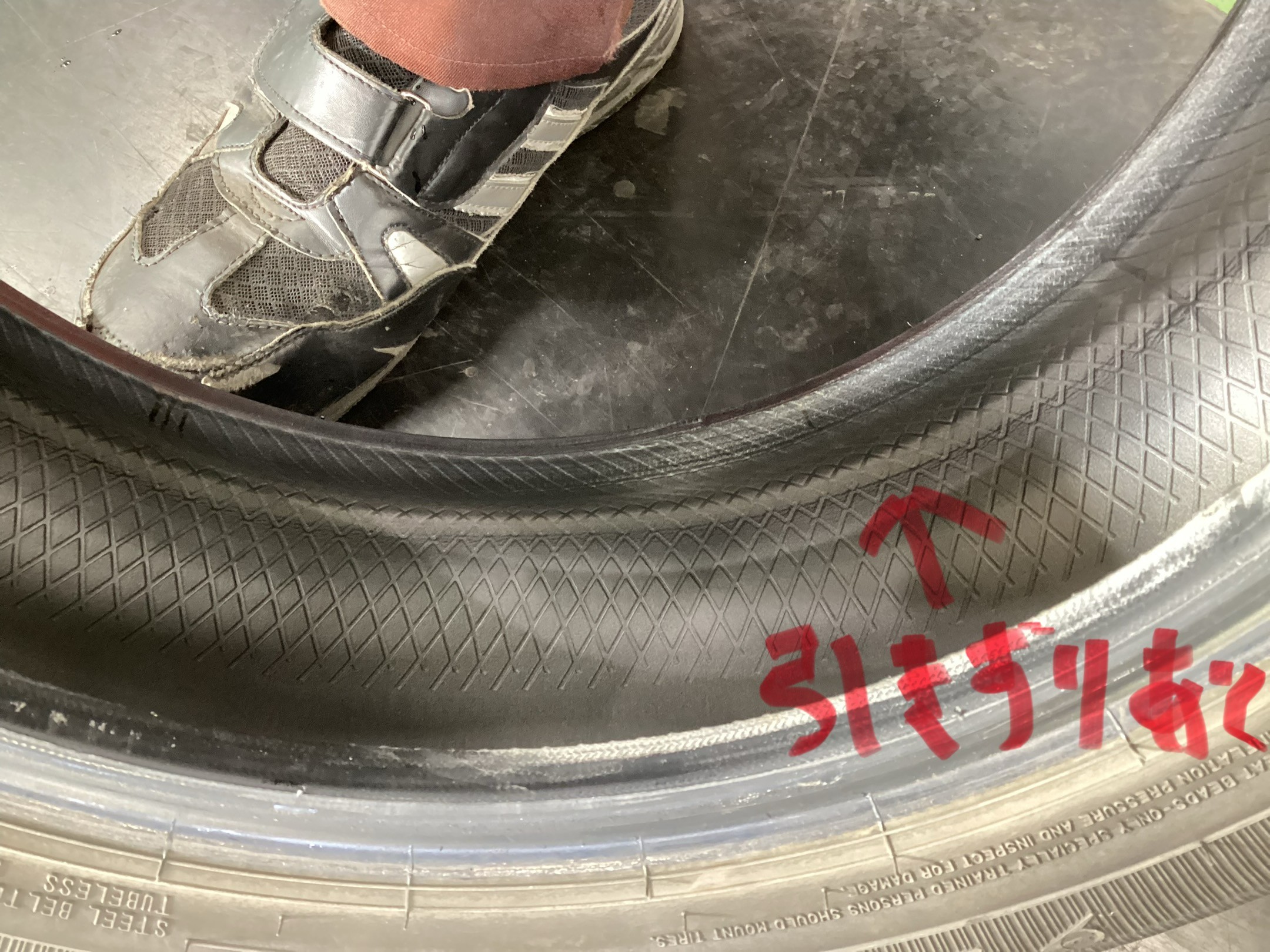 おや?タイヤの側面に良くない跡が付いている(。-`ω-)