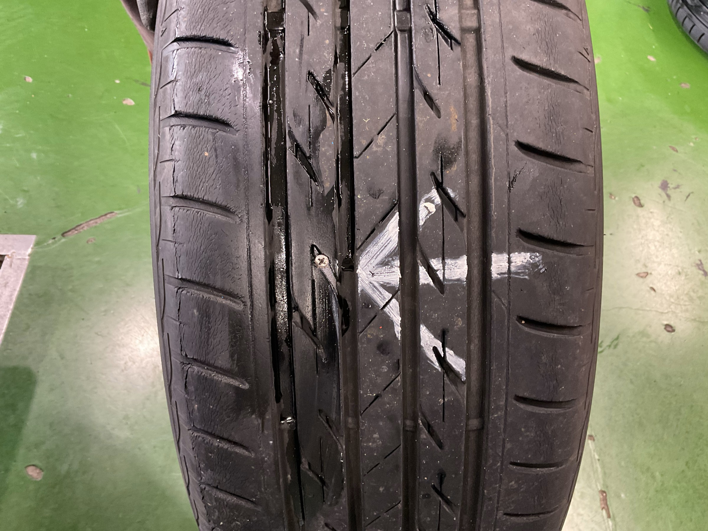 ・パンクして、他のタイヤも点検したところ摩耗が進み使用限界を示すスリップサインに到達していました。