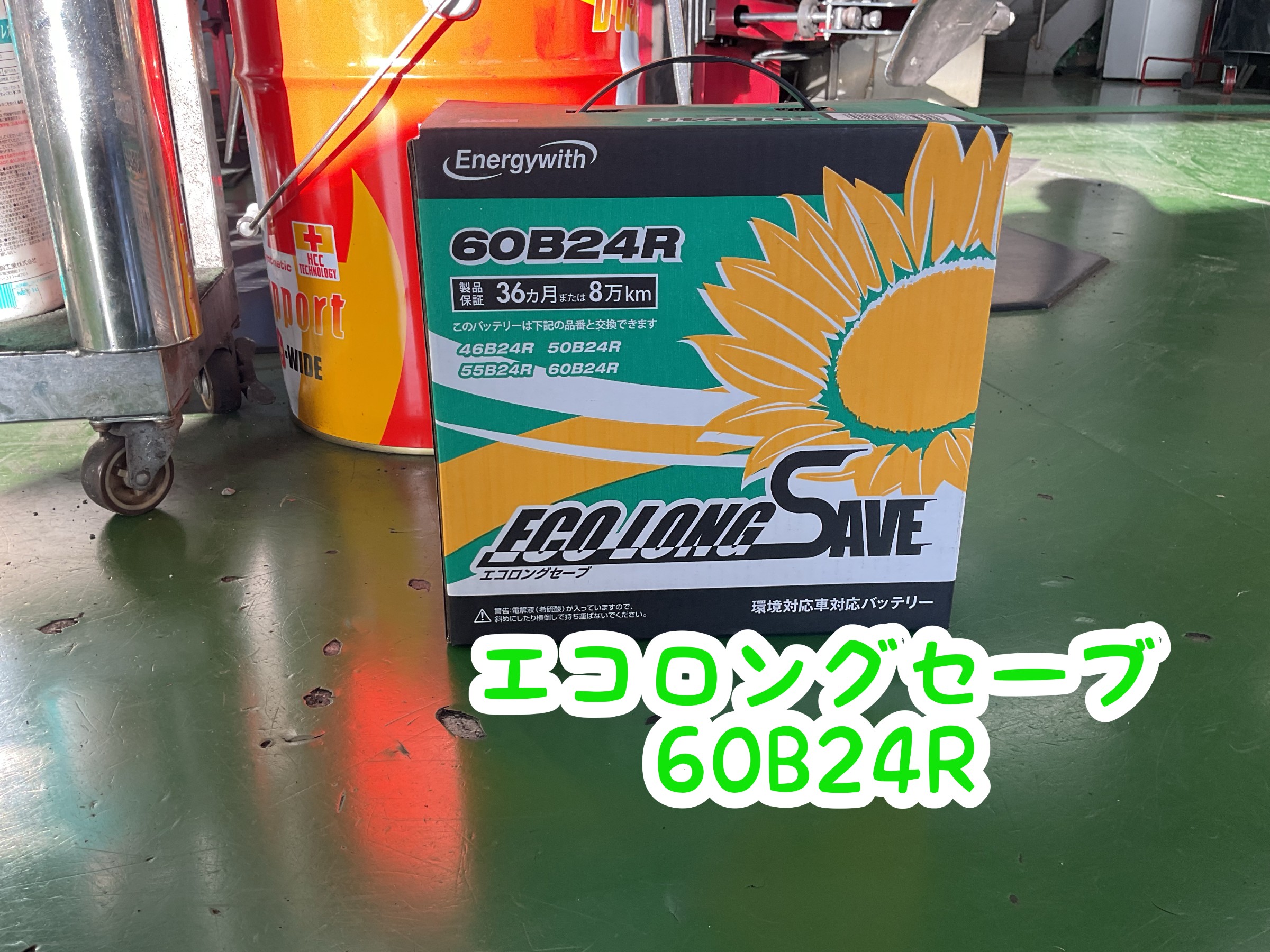 新たに装着するバッテリーは、エコロングセーブ・60B24Rをご用意しました。