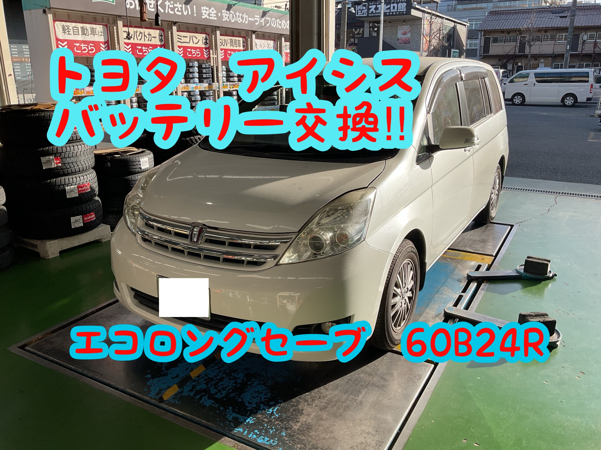 【バッテリー交換もタイヤ館高津店におまかせ!!】 トヨタ・アイシスのバッテリーを「エコロングセーブ60B24R」に交換しました。