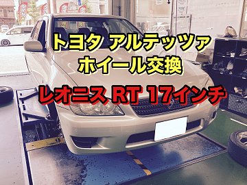 皆さん、こんにちは! タイヤ館高津店です 本日は、トヨタ アルテッツァのホイール交換です。 ホイールの劣化、メッキの剥がれがありましたので交換します。 タイヤも年数経過がありましたのでセットで交換します。 新しいホイールは、レオニスRT アルミホイールのお問合せお待ちしております。