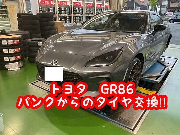 みなさまこんにちは、タイヤ館高津店のスタッフ、羽田野です。 当店のホームページをご覧いただきありがとうございます。 さて本日はトヨタ・GR86のタイヤ交換をご紹介します。 お客さまは、タイヤのパンクに気づきガソリンスタンドで修理したがエアが漏れていないか心配という事で当店に来店され、...