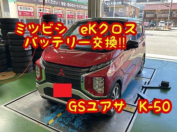 【バッテリー交換もタイヤ館高津店におまかせ!!】 ミツビシ・eKクロスのバッテリーを「GSユアサ K-50」に交換しました。
