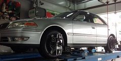 皆様こんにちは( ・`ー・´)v お久しぶりのアライメント作業のご紹介です。 作業車両:トヨタ マークII 調整箇所:フロントトー、フロントキャンバー、リヤトー、リヤキャンバー 計8箇所 診断結果はというと… フロント、リヤのキャンバーが大きくずれていました。 トーもずれていましたが、基準値範囲...