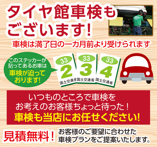タイヤ館高槻でも、車検の取扱いしているのご存知ですか?