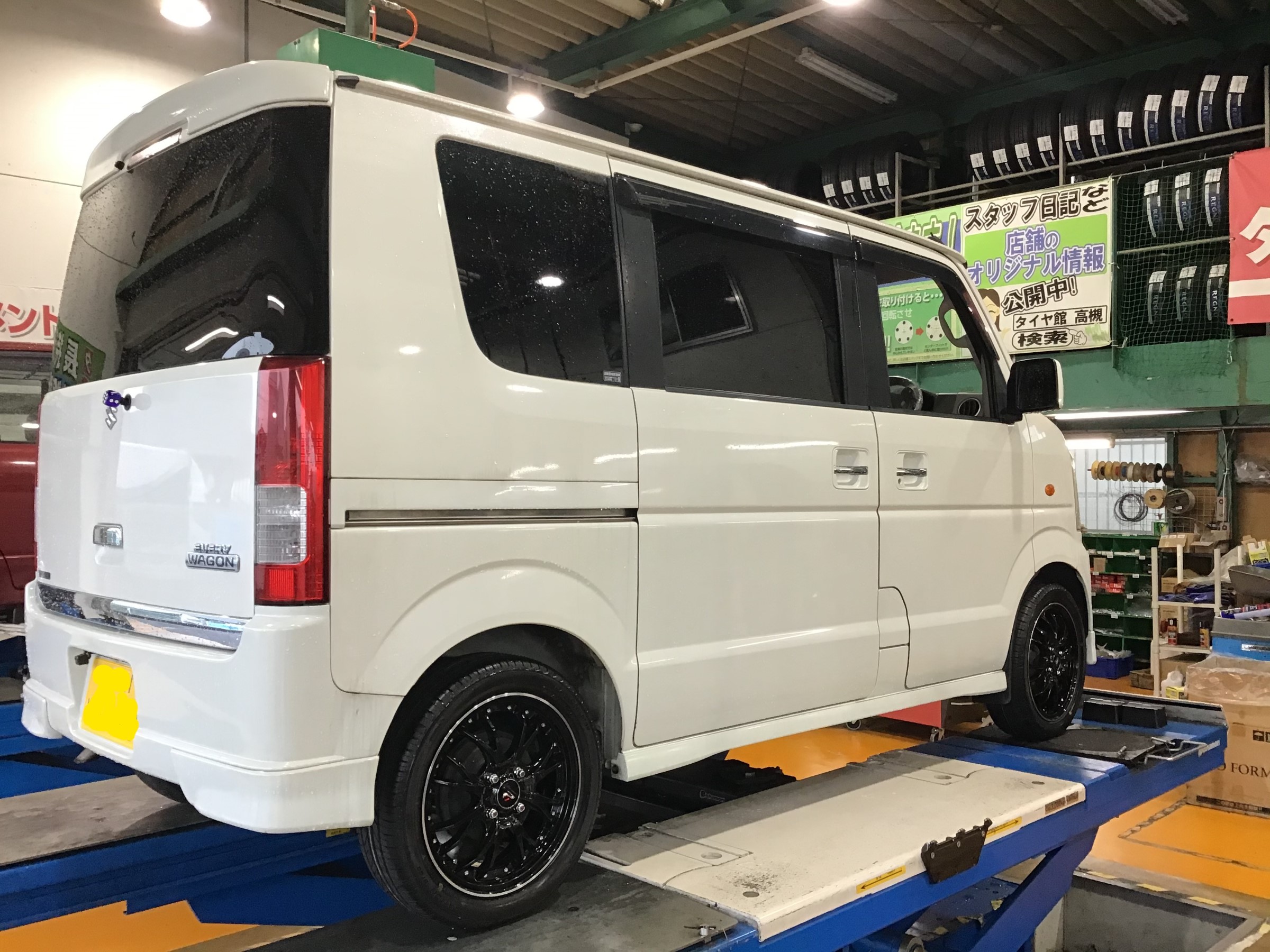 スズキ エブリイにインチアップ・タイヤ&ホイールセットを取付させていただきました!!