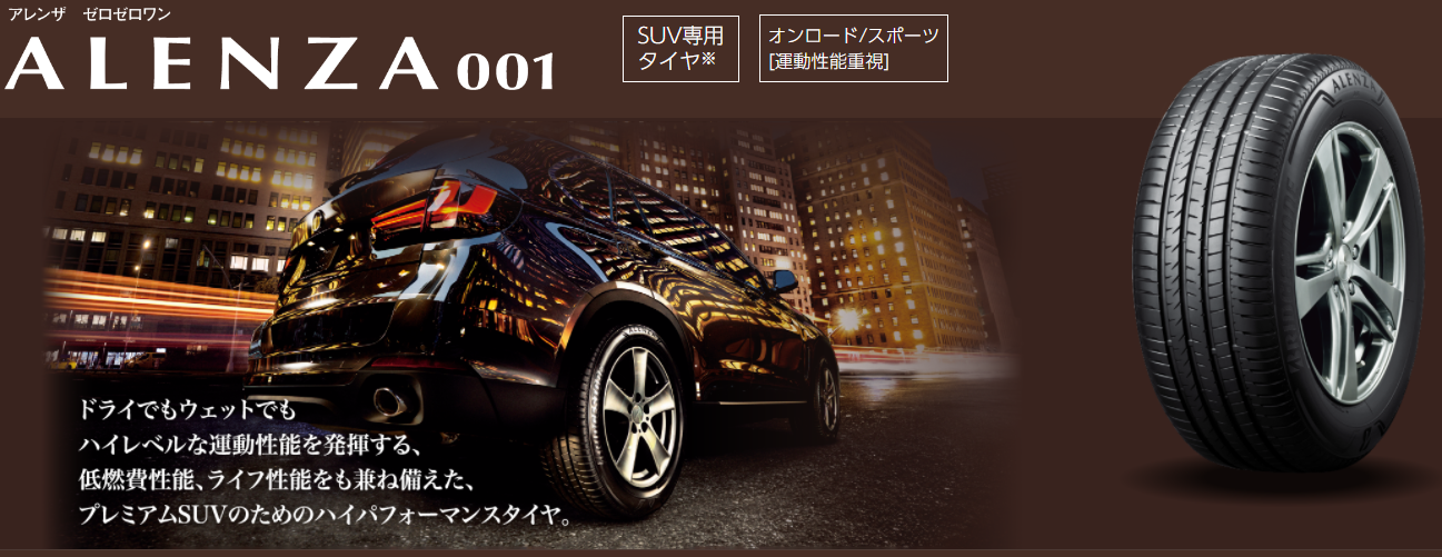 ↑ドライ&ウェットどちらでも運動性能高い SUV専用タイヤ ALENZA 001