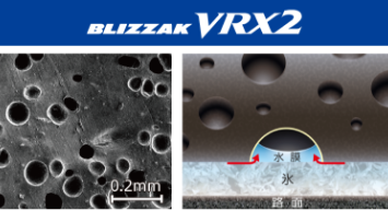 ブリヂストンのスタッドレスタイヤ、ブリザックなら水の膜を素早く取り除いて、路面にタイヤを密着させるので滑りにくくなります。