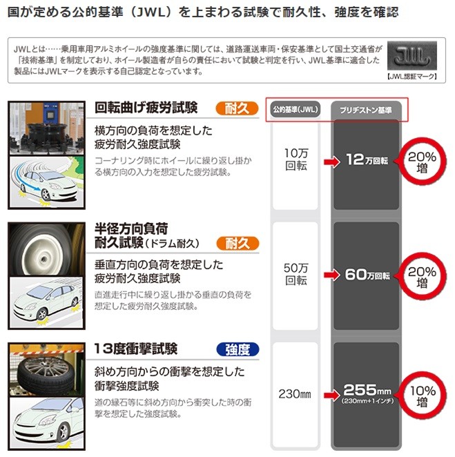 ※上記品質テスト結果についてはブリヂストンのサイトをご確認ください ブリヂストンホイール
