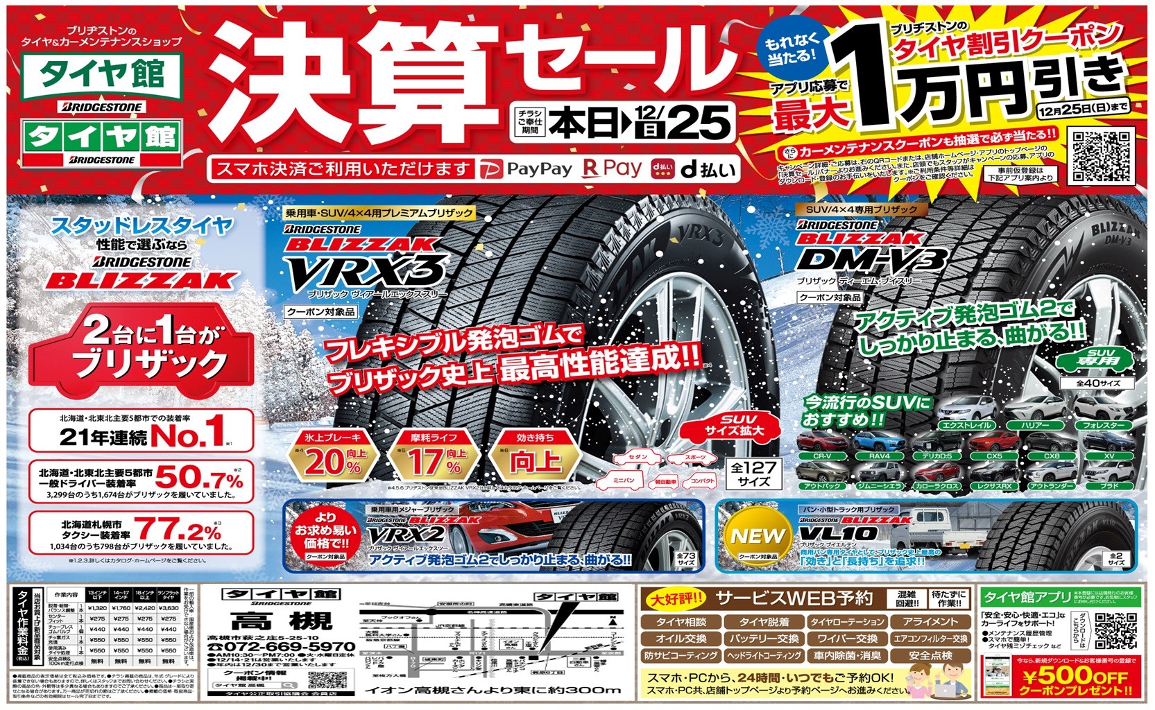 いつもタイヤ館高槻店のホームページご覧頂き、ありがとうございます!