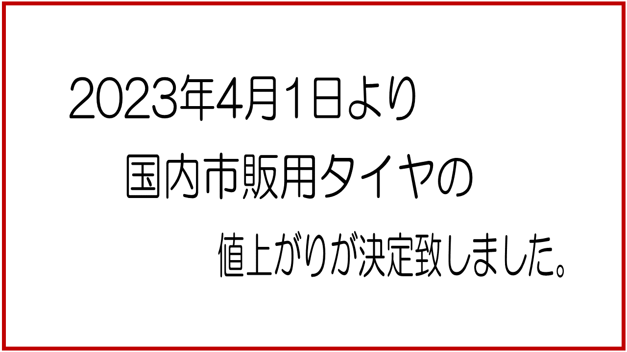 | 3.値上げ時期: | 夏タイヤ 2023年4月1日(土) 冬タイヤ 2023年7月1日(土) |
