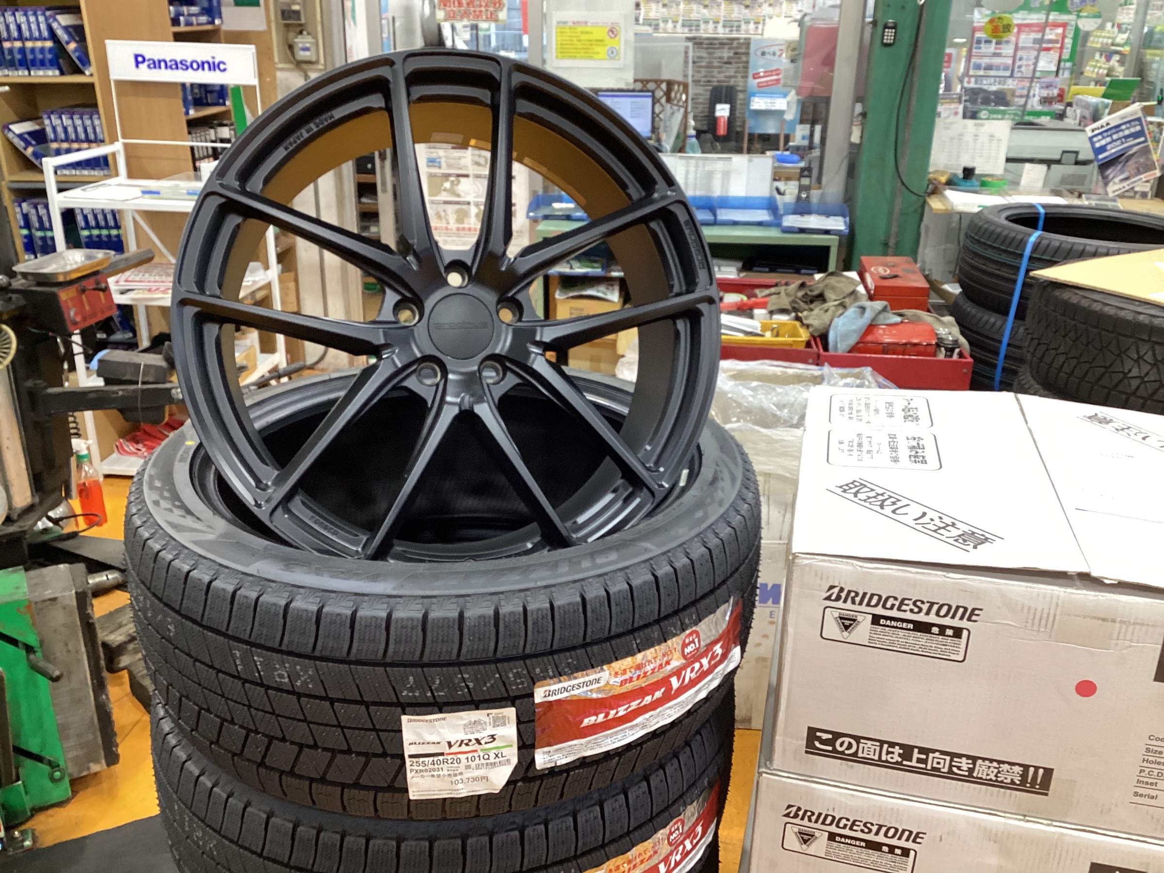 装着タイヤはブリヂストンの大人気スタッドレスタイヤブリザック VRX3 255/40R20です。