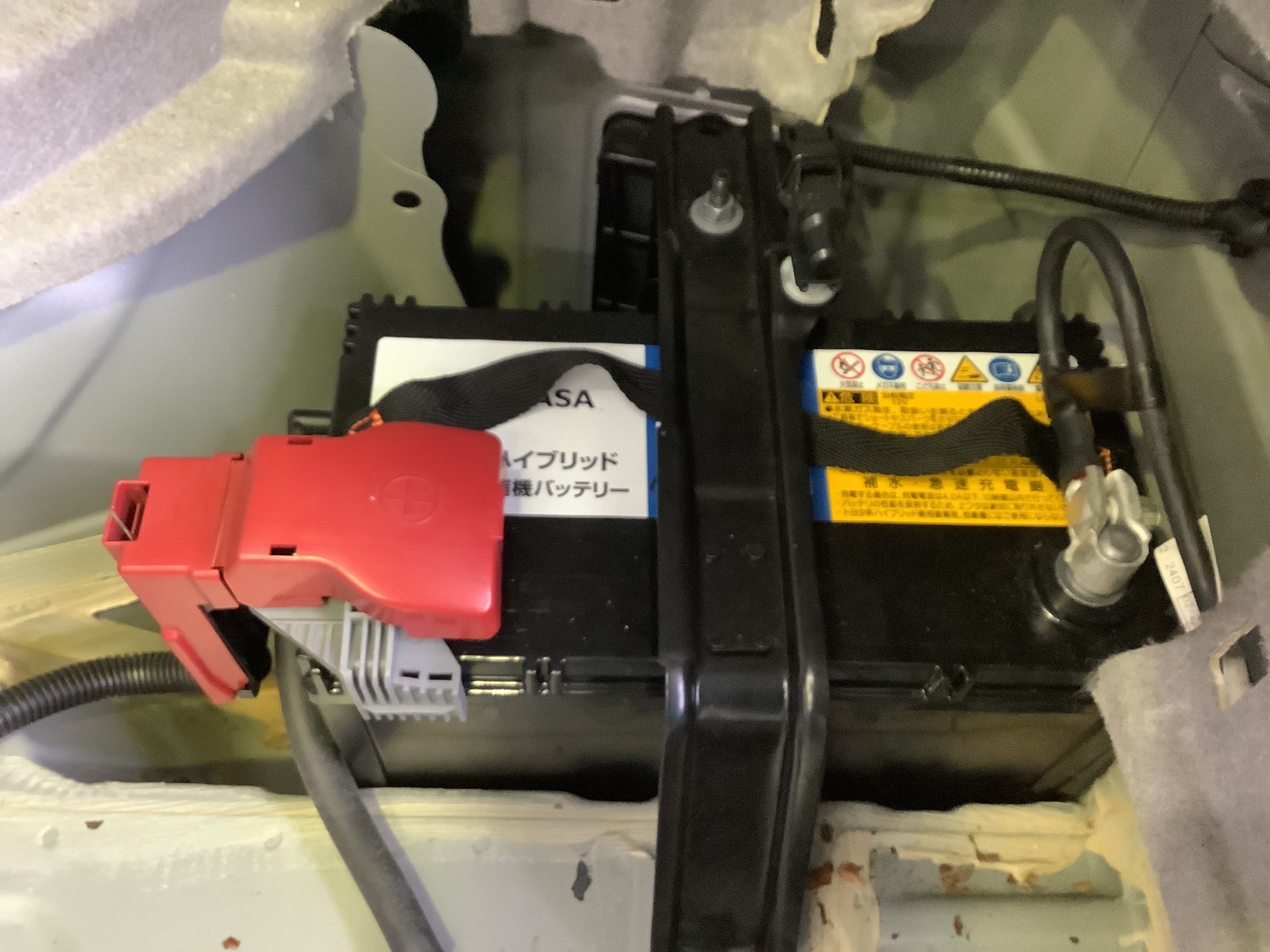 ハイブリッド車の補機バッテリーは車室内に設置されていることが多く点検が実施されていない事が多いです。