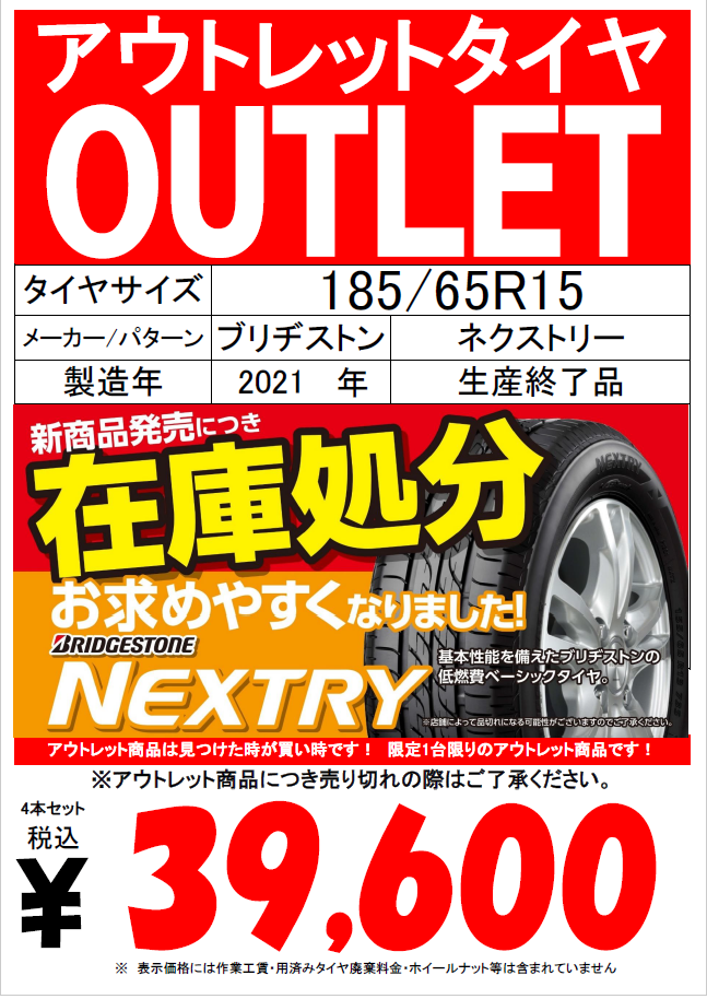 アウトレットタイヤを集めて、お買い得価格にて ご提供しています。