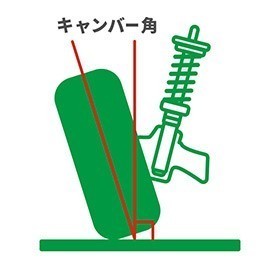 タイヤが、どれだけ傾いて取り付けられているかを示します。