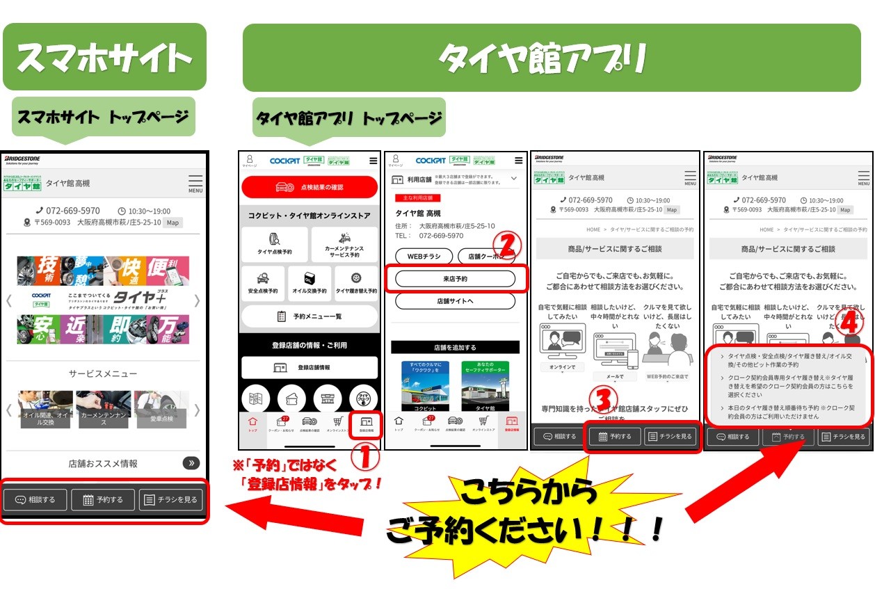 ※タイヤ館アプリから ご予約する際