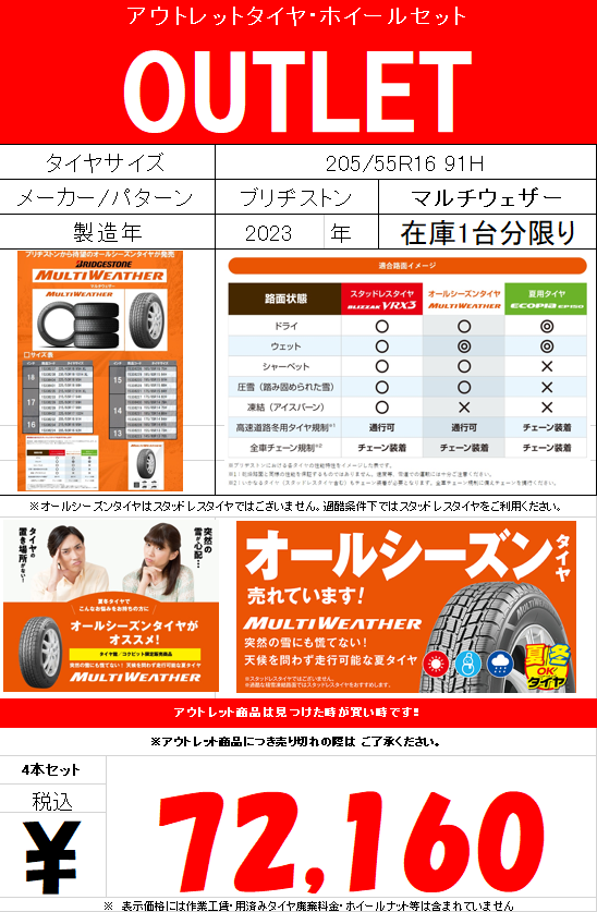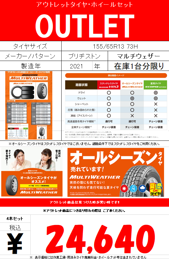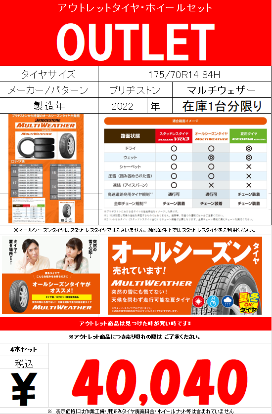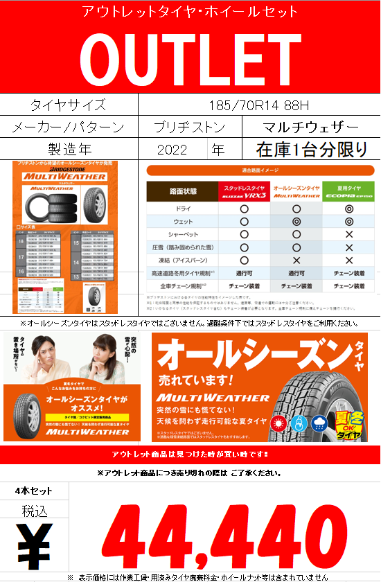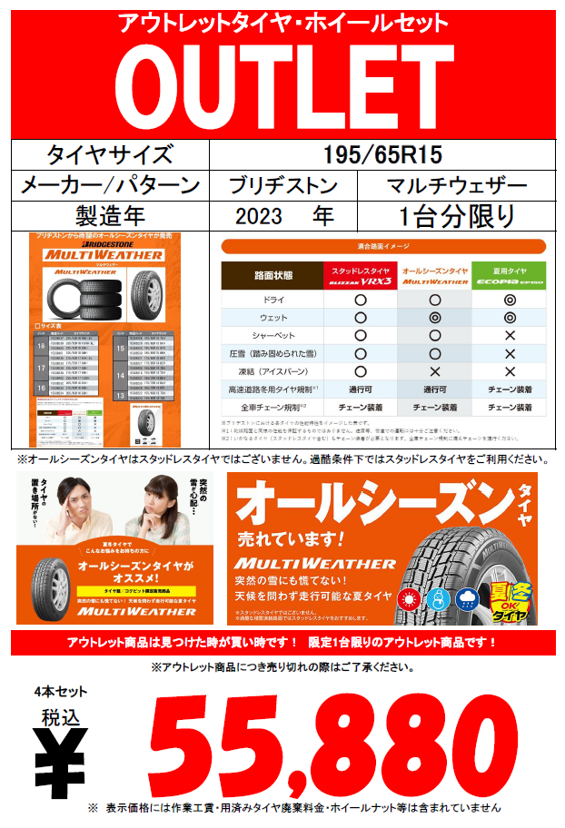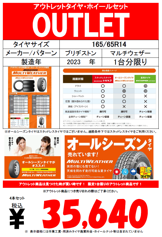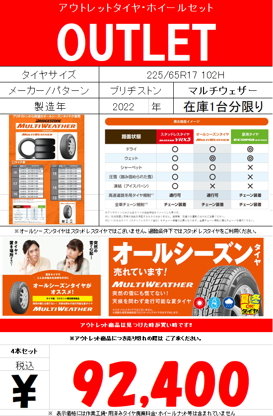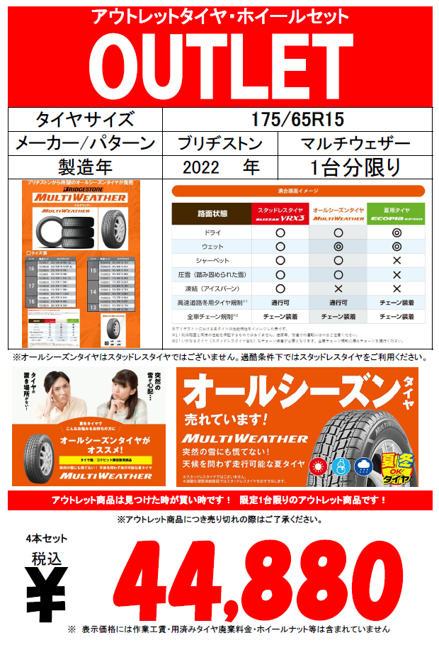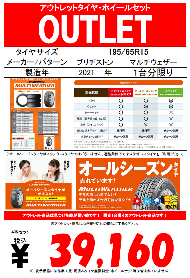 【OUTLET】人気のオールシーズンタイヤ٩( ''ω'' )و