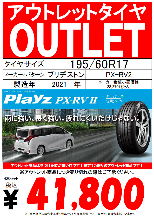 アウトレットタイヤを集めて お買い得価格にて ご提供しています。