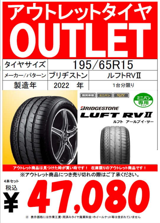 アウトレットタイヤを集めて お買い得価格にて ご提供しています。