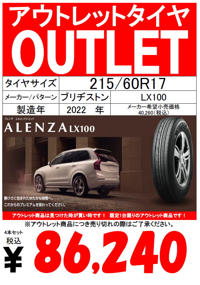 アウトレットタイヤを集めて お買い得価格にて ご提供しています。